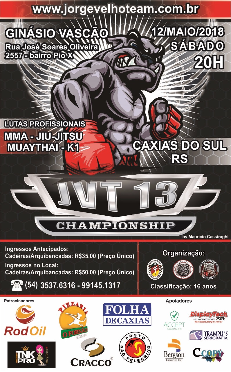 Vem aí… JVT13 Administrador JVT 22 de fevereiro de 2018 13º JVT CHAMPIONSHIP, NOTÍCIAS Leave a comment 71 Views Share tweetRelated Articles Guarda Municipal participa de curso de nivelamento da ROMU no CT JVT9 de setembro de 2023 JORGE VELHO E RECONHECIDO COMO UM DOS MAIORES LUTADORES E PROFESSORES DO RIO GRANDE DO SUL26 de setembro de 2025 Vem aí!! JVT FIGHT NIGHT 101 de setembro de 2025 Vem aí!! JVT FIGHT NIGHT 911 de agosto de 2025 Share tweet